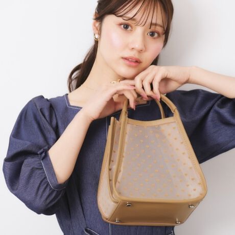 メッシュ素材にハートフロッキードットプリントがかわいい、トレンド感のあるデザインバッグ。