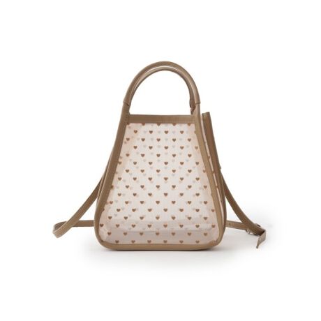 メッシュ素材にハートフロッキードットプリントがかわいい、トレンド感のあるデザインバッグ。