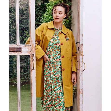 ナチュラルな印象のスプリングコート。ゆったりとしたIラインシルエットで快適な着心地を実現。季節の変わり目には中に着こむことも可能なサイズ感です。大きな襟と立体的な袖がデザインポイントに。目を惹く大き目のボタンと配色ステッチがホコモモラらしさを後押しします。