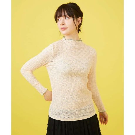 柔らかく透け感のあるカットソー素材。ポコポコとした表面感のある花柄のカットソーレースが印象的です。ウレタン混ですっきりシルエットながら伸縮性も兼ね揃えた一枚です。