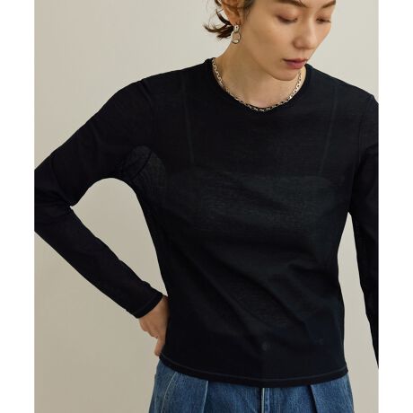 【洗える】ドライタッチシアーロングスリーブカットソー