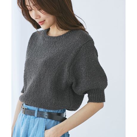 ・綿のスラブ糸にラメを加えた、ほどよいラスティックさが今年らしい糸を使用。