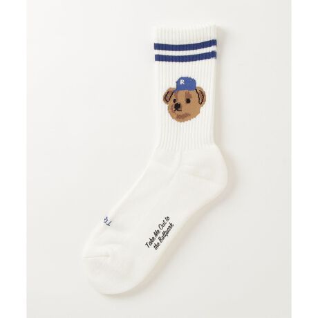 スポーティな2本線にキャップを被ったクマがデザインされた特徴的なラインソックスです。