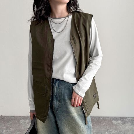・レイヤードスタイルにオススメのミリタリー感のあるリバーシブルベストです