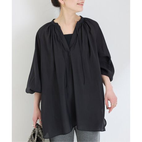 素材を活かし立体的なフォルムになるように、タック&ギャザーでボリュームを出し、トレンドのチュニック丈をパンツにレイヤードした時のバランスが新鮮です。