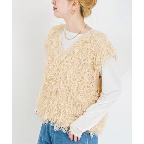 ループ状のニットがフリンジデザインになったプルオーバー。