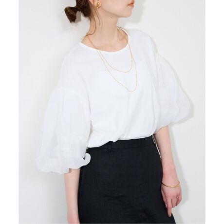 ・Tシャツにオーガンジーの袖がドッキングした鮮度あるカットソー。