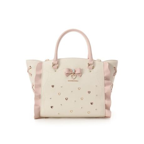 ◇SAMANTHAVEGA(サマンサベガ)のリボンジュエリーフラッター(小)大人気ベストセラーの「フラッターコレクション」からバイカラーの新色が登場爽やかな甘いパステルカラーとジュエリーのようなキラキラ輝くビジューがポイントです▽デザイン・フロントに散りばめれらたハートのビジューはバッグによって異なったカラーでこだわりポイント。・中央のリボンはジュエリーのような重厚感ある輝きと、パールで造られたハートチャームが揺れて煌びやかな印象に・サイドもリボンデザインで360℃可愛いバッグです。・大ぶりなサイドフリルは存在感があってよりフェミニンな印象に▽機能性・ショルダー付きで2WAYで使用いただけます。・内装の紐は鍵やパスケースなどを付けてすぐ取り出せる便利ポイント・ファスナー付きのポケットがあり細かなものも収納しやすい【対応しているもの】・長財布・ペットボトル(500ml)