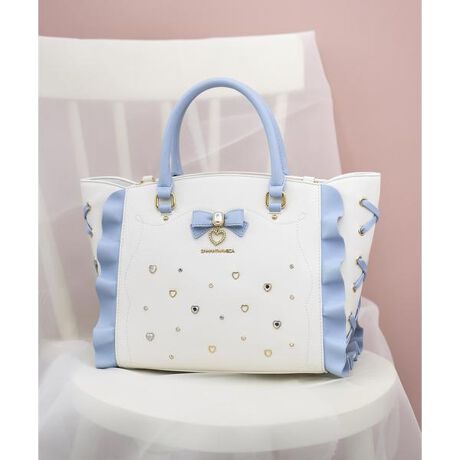 ◇SAMANTHAVEGA(サマンサベガ)のリボンジュエリーフラッター(小)大人気ベストセラーの「フラッターコレクション」からバイカラーの新色が登場爽やかな甘いパステルカラーとジュエリーのようなキラキラ輝くビジューがポイントです▽デザイン・フロントに散りばめれらたハートのビジューはバッグによって異なったカラーでこだわりポイント。・中央のリボンはジュエリーのような重厚感ある輝きと、パールで造られたハートチャームが揺れて煌びやかな印象に・サイドもリボンデザインで360℃可愛いバッグです。・大ぶりなサイドフリルは存在感があってよりフェミニンな印象に▽機能性・ショルダー付きで2WAYで使用いただけます。・内装の紐は鍵やパスケースなどを付けてすぐ取り出せる便利ポイント・ファスナー付きのポケットがあり細かなものも収納しやすい【対応しているもの】・長財布・ペットボトル(500ml)