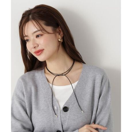 顔まわりを印象的に見せてくれるメタルパーツを付けたロープチョーカー。首元でぐるっと巻いたり結んだりと、アレンジ次第で表情をかえてコーディネートを楽しめます。※モデルの着用画像の場合、光の当たり具合により、実際の色味と異なって見えることがございます。色味は、商品単体の画像をご参照ください。