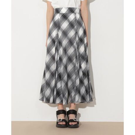 JILL by JILL STUARTオリジナルのチェックプリントを使用したフレアスカート。シアーな素材にオリジナル配色のチェックプリントをのせた、春らしく軽やかな一枚。真面目な印象になりがちなチェックはバイヤス(斜め)で柄を組み、柔らかな印象に仕上げています。淡いトーンや差し色が効いた柄感はプリントならでは。マチを入れた裾にボリュームを持たせたシルエットが、ドラマチックなムードを演出します。後ろウエストはゴム仕様でフィットするはき心地です。※撮影時照明の関係により、色味が違って見える場合がございます。またパソコン・スマートフォンなどの環境により、若干製品と画像のカラーが異なる場合もございます。予めご了承ください。商品の色味は、商品単品画像をご参照下さい。※商品画像はサンプルのため、色味やサイズ等の仕様に変更がある場合がございますので、予めご了承ください。