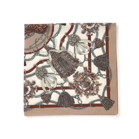クラシカルな雰囲気ただようタッセル柄スカーフ。首に巻いたり、バッグのハンドルに結ぶなど、コーディネートのアクセントにぴったりです。シーズンレスで取り入れやすいのも嬉しいポイント。ベージュとグリーンの2色展開です。※モデルの着用画像の場合、光の当たり具合により、実際の色味と異なって見えることがございます。色味は、商品単体の画像をご参照ください。