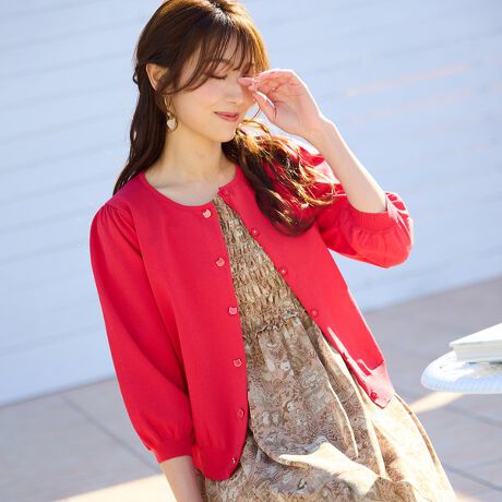 オリジナルのネコボタンがかわいいニットカーディガン。