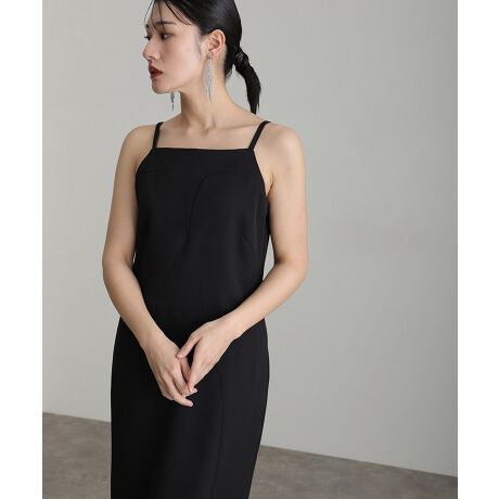 シンプルながらもエレガンスが際立つアシンメトリードレス。