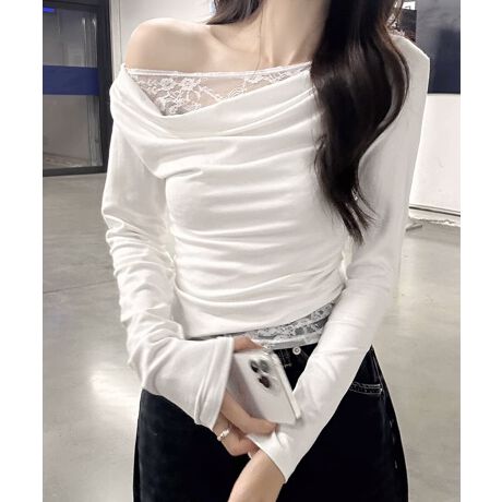 レイヤード風のレースデザインがかわいいTシャツトップス