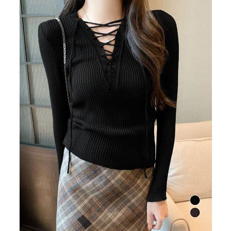 マルイウェブチャネル   /   ミニミニストア   /   トップス   /   ニット・セーター   /   Vネックレースアップ 薄手長袖 トップス