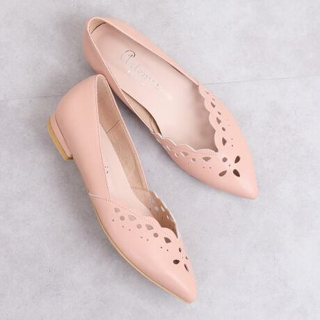 スカラップデザイン カットワークフラットパンプス