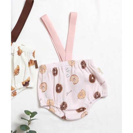apres les cours(アプレレクール)の雑貨・小物「おやつ柄サスペンダー付きブルマ」は、やさしいニュアンスのナチュラルなデザイン。ベビーのコーデにおしゃれさをプラス♪