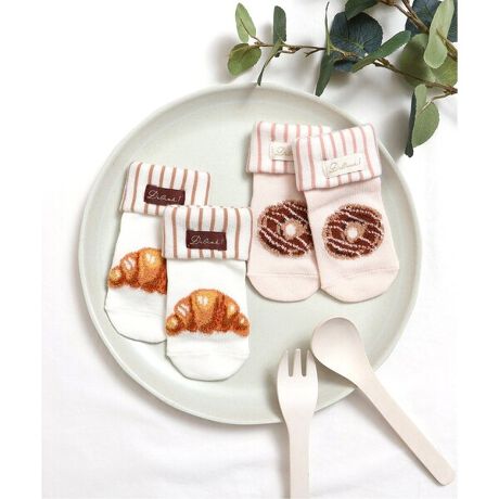 apres les cours(アプレレクール)のタイツ・ソックス「おやつ柄ベビーソックス」は、足元からおしゃれになれるデザイン。おようふくとのスタイリングも楽しんで。