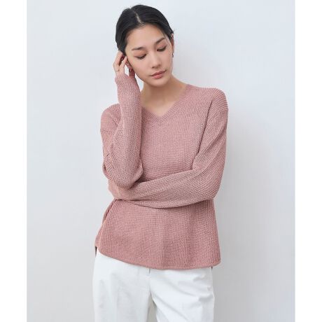 ■デザイン上品な凹凸目が高級感溢れる、ミドルゲージの畦編みニット。素材の持つツヤと落ち感でカジュアルになりすぎず洗練された印象に。シャープなVネックがデコルテをキレイに見せてくれます。ややゆったりシルエットながら細見えするよう、サイジングにも拘りました。シャツテールのようなヘムラインとバックベントが軽やかな印象で、さりげない編地切替えもポイントです。ヒップが隠れるレングスで、どんなボトムとも相性良く着ていただけます。カットソーとのレイヤードでカジュアルに着ていただくのもオススメです。
