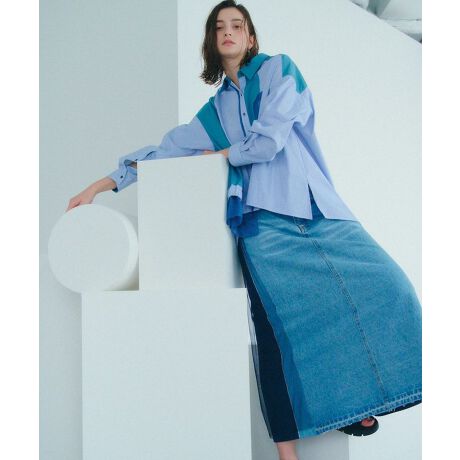 ヴィンテージライクな14オンスデニムに、ツイル素材とチュール素材をドッキングした遊び心のあるデザインです。