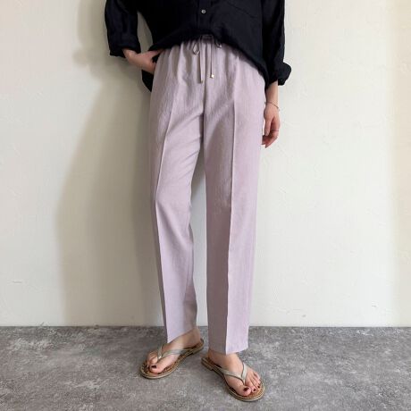 ・爽やかな印象のリネン混バイオツイルテーパードパンツです