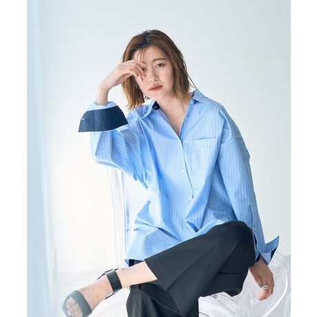 前ボタンを閉じて着るのはもちろん、長めの着丈でさっと羽織った爽やかなコーディネートもおすすめです。透け感[なし]