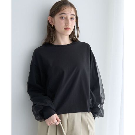 シンプルなカットソーにチュールをMIXしたデザインプルオーバー。