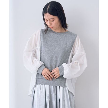 カジュアルな生地を異素材MIXしたデザインプルオーバー。