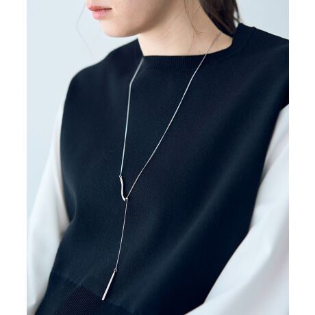 ウェービーなメタルバーが印象的なラリエットネックレス。