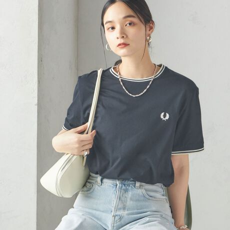ネックと袖リブにフレッドペリーのシグニチャーであるティップラインを施したクルーネックTシャツ。