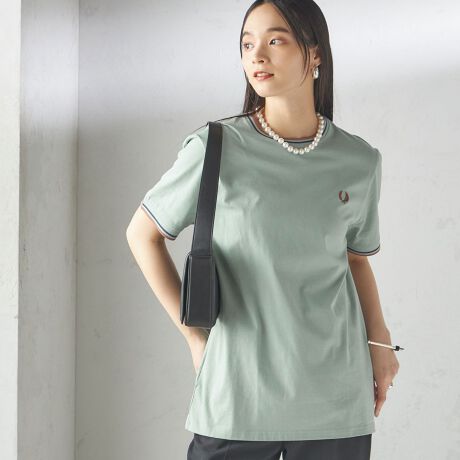 ネックと袖リブにフレッドペリーのシグニチャーであるティップラインを施したクルーネックTシャツ。