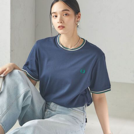 ネックと袖リブにフレッドペリーのシグニチャーであるティップラインを施したクルーネックTシャツ。