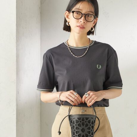 ネックと袖リブにフレッドペリーのシグニチャーであるティップラインを施したクルーネックTシャツ。