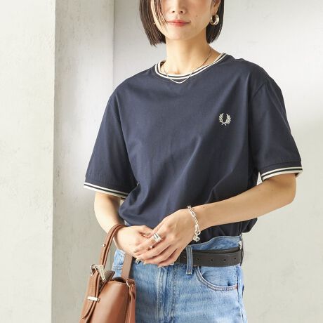 ネックと袖リブにフレッドペリーのシグニチャーであるティップラインを施したクルーネックTシャツ。