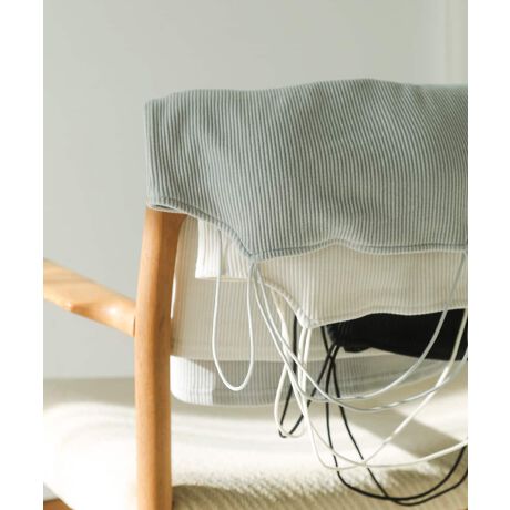 ニュアンスカラーのリブ素材を使用。肩紐はゴム素材を使用。