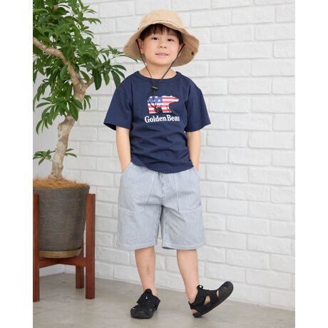 オーガニックコットン100%のヒッコリー素材を使用したハーフパンツです。