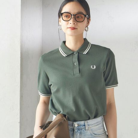 衿と袖にティップラインが入ったウィメンズのフレッドペリーシャツ。