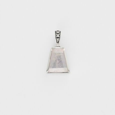 アメジストの上にルチルクォーツを重ねた、神秘的な色合いが魅力的な新作ダブレットストーンのネックレスチャームです。アメジストの美しい色味を引き立てるため、石座には光穴を設けず、シルバーの直線的なライン留めでエレガントに仕上げています。バチカンには繊細なダイヤモンドが並び、柔らかな色合いにシャープな輝きを添えています。2月の誕生石でもあるアメジスト。“真実の愛”“心の平和”といった石言葉を持ち、心をポジティブな状態に導いてくれると言われています。エッジの効いた台形フォルムが、スタイリッシュでモダンな雰囲気を醸し出します。※天然石や天然素材を使用しているものは、サイズ・色味・風合いの違いや、若干の傷、内包物の有無などに個体差があります。予めご了承ください。