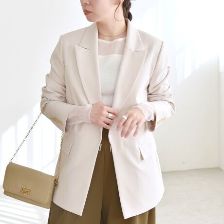 太めの襟がメンズライクなムードのテーラードジャケット。