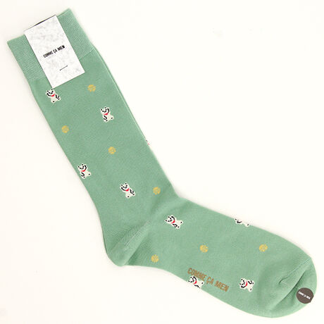 コムサメン クルー丈ソックス 招き猫柄