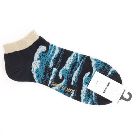 コムサメン アンクル丈ソックス 波柄