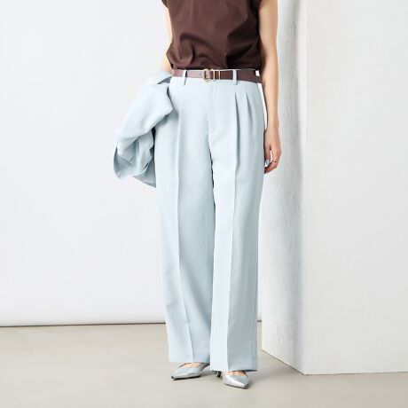 ・ドライタッチの爽やかな印象の素材を使用したワイドパンツ
