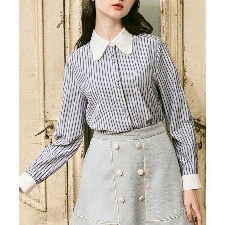 【洗える】ラビット カラー ストライプ シャツ