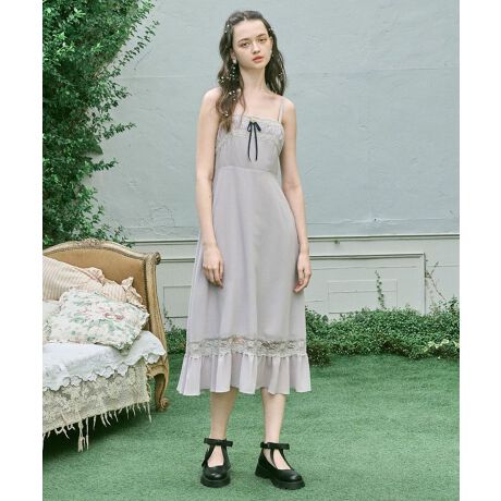 柔らかなジョーゼット素材に、ほんのり透け感のある裾のレースラインが軽やかなアクセントに。