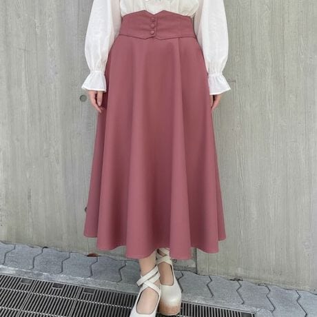 コルセットベルトの取り外しができる2way仕様のフレアースカート。