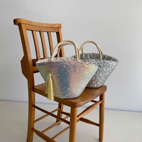 ・キラキラ輝くスパンコールに包まれたシェル型のカゴバッグです