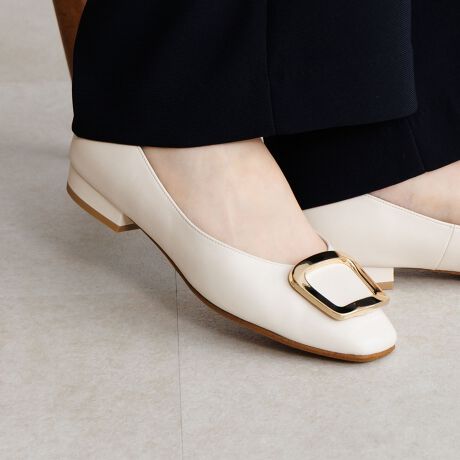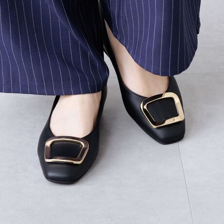 ソフトスクエアトゥで品よく履けるローヒールパンプス。