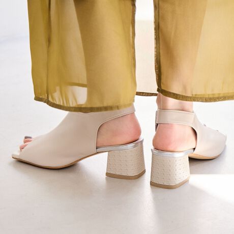 内ファスナー仕様で脱ぎ履きしやすいのも嬉しいポイント。ヒール部分には贅沢にオリジナルの「イントレチャート」型押しレザーを使用。モードと女性らしさを兼ね備えた、見た目以上に快適な履き心地のサンダルです。