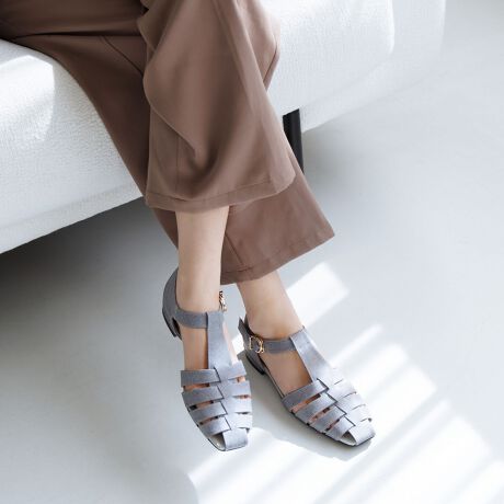 ヒールに巻いたクロコ型押しのレザーがさりげなくアクセントに。すっきりとしたトゥ先でカジュアル過ぎず、きれいめにも履けるのも嬉しいポイントです。 鮮やかなブルーグリーンとメタリックカラーのシルバーが加わり、春らしい華やかなカラーラインナップに。